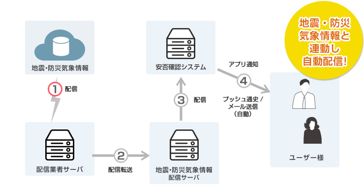 - 地震情報との連動により、インターネットが混雑する前の迅速なメール配信を目標としています。